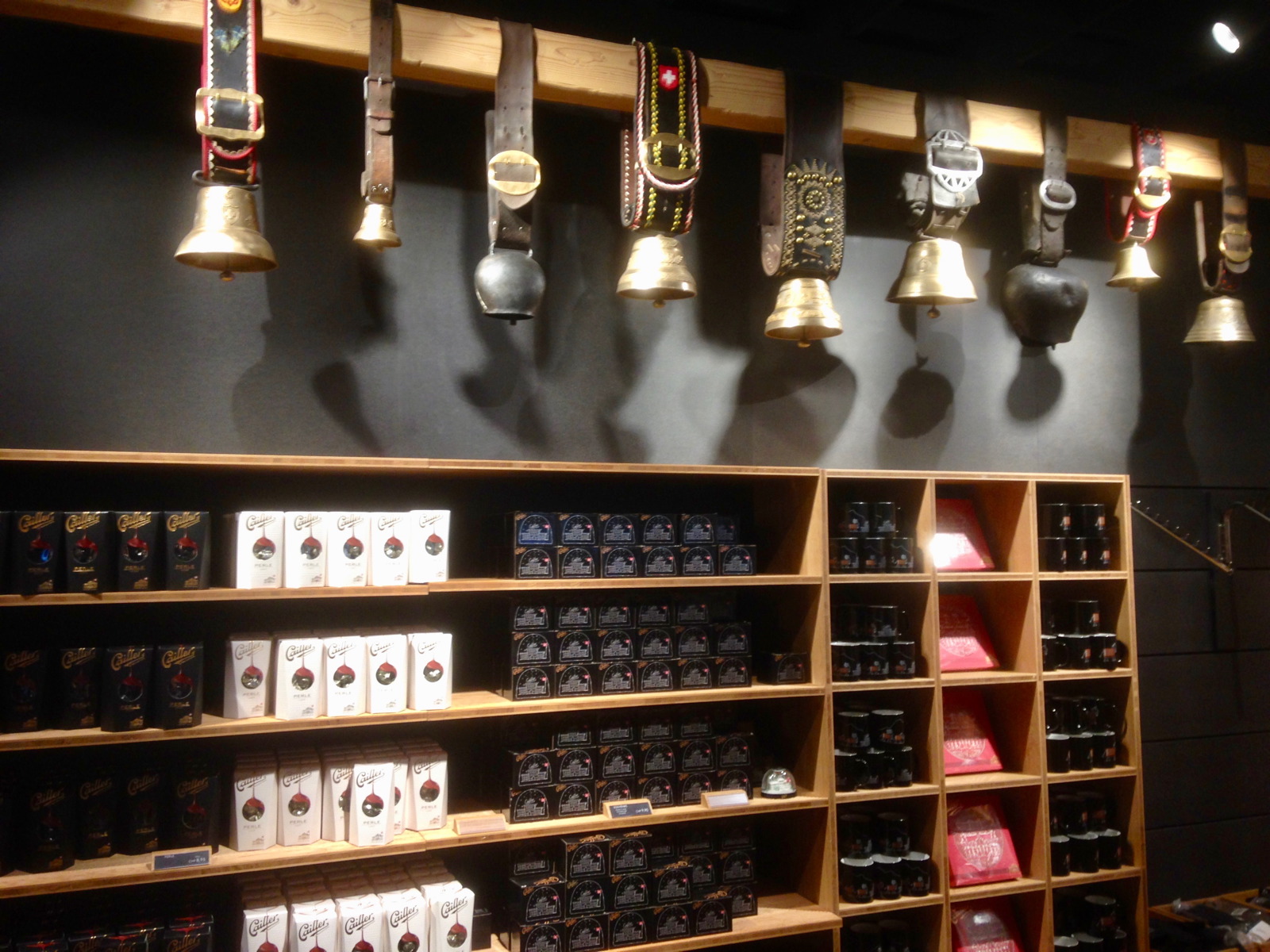 The interior of the restaurant is a bit kitsch, but charming with its spotted cow upholstered chairs, long wooden tables, a wall-sized hearth and local decor. Cow bells hang from wooden beams, antique skis stick out of giant milk jugs and ski posters from the 40’s decorate the walls.