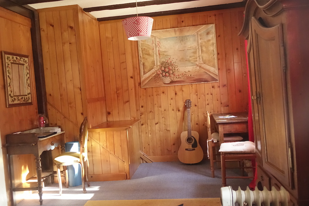 The staircase, so steep and narrow, must be navigated sideways and leads to 2 bedrooms. In our bedroom, the antique armoires are too narrow to hang things, so I rolled up our clothes and stored them in baskets under our bed.